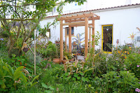 Depois são capuchinhas, malvas, ameixeiras, gingeiras, macieiras, boldo, tomilho, alecrim, alfazemas, salvas, tudo em flor numa verdadeira celebração, comemorando os momentos de escassa chuva."